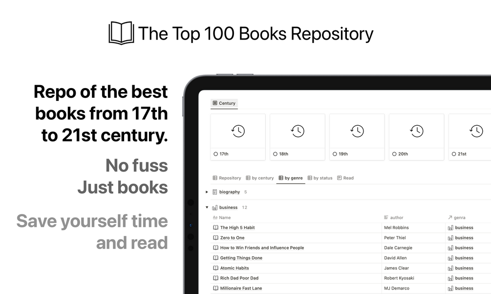 You don't know what to read ? You're tired of searching the always cringy "best books list". Save yourself time and get all the bests books from 17th to 21st.