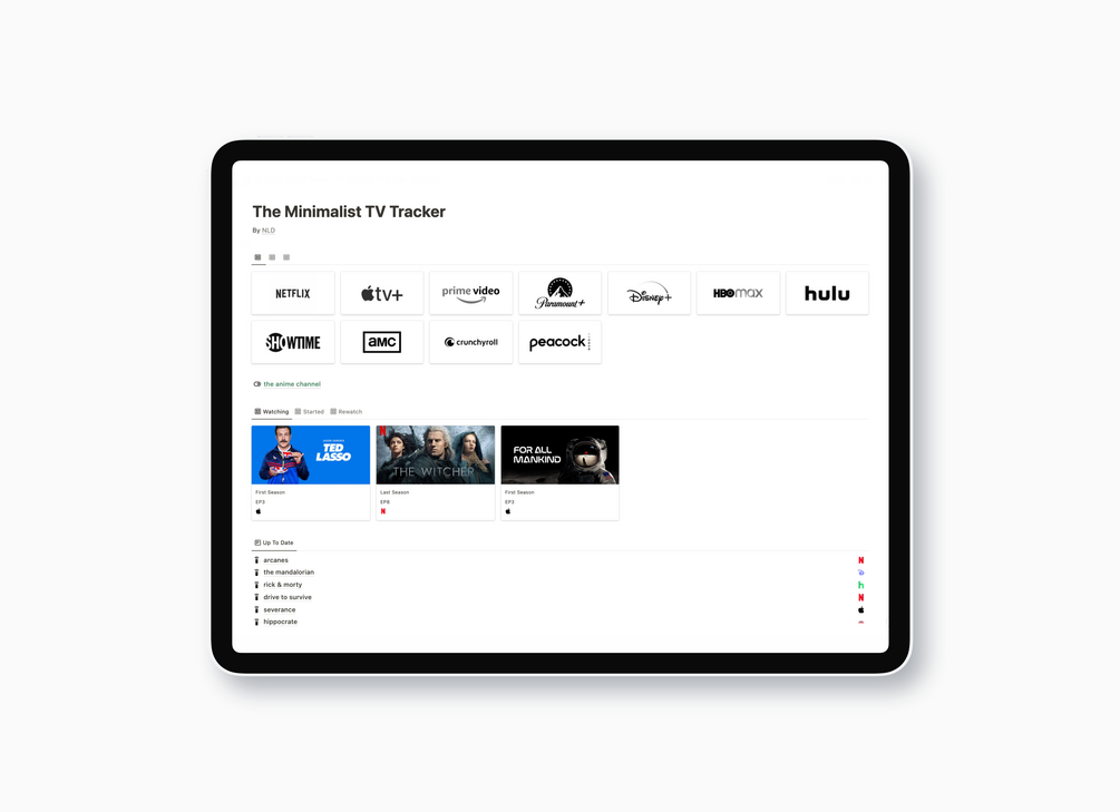 The Minimalist TV Tracker + Empty template for you to start + French version.